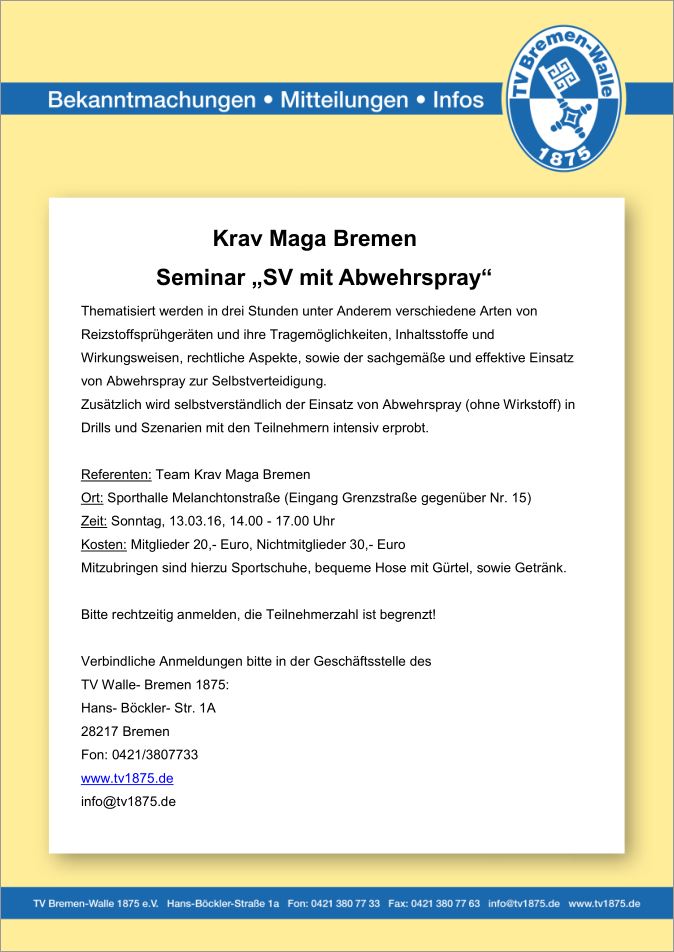 Kurs Selbstverteidigung mit dem Abwehrspray ist ausgebucht